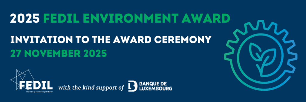 We are pleased to invite you to discover the winners of the 2025 edition of the “Prix de l’Environnement de la FEDIL”. The awards ceremony will take place in the presence of the Minister of the Environment, Climate and Biodiversity